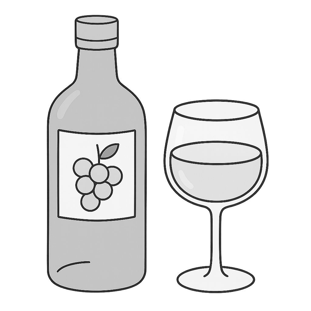 「白ワインのボトルとグラス」 カラー版|無料ダウンロード