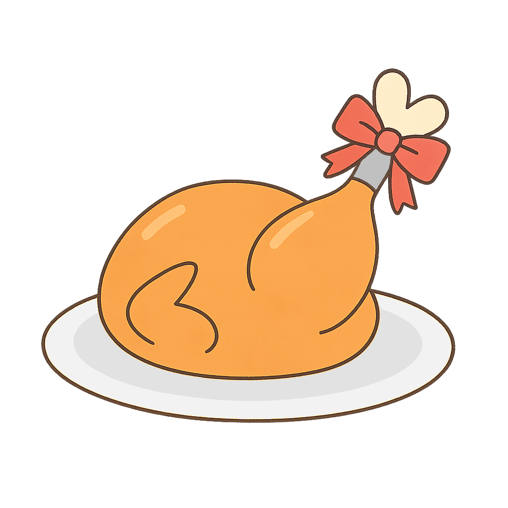 クリスマスの定番料理・ローストチキンを描いたイラストです。