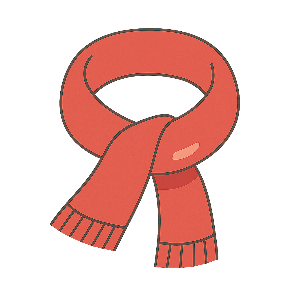 冬の防寒アイテム・赤いマフラーを描いたイラストです。