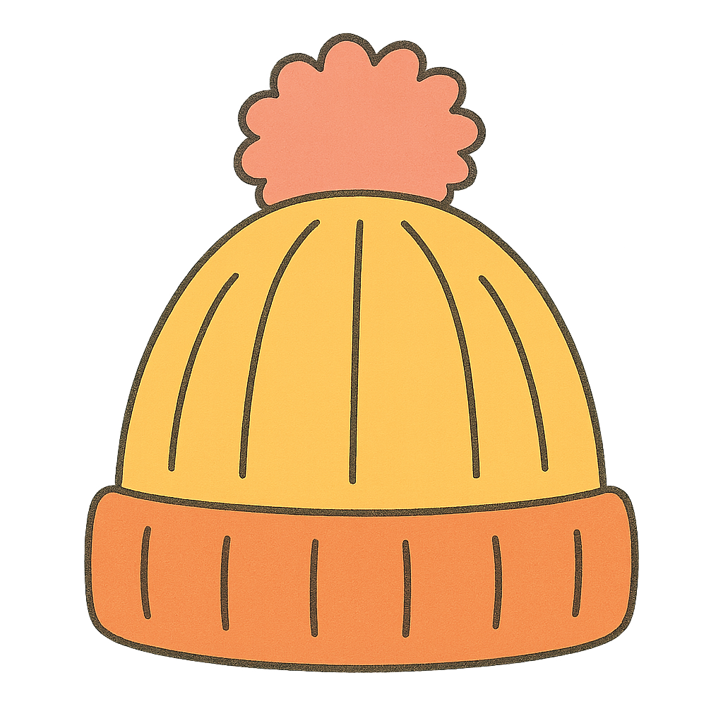 冬の防寒アイテム・ニット帽を描いたイラスト。ポンポン付きのかわいいニット帽です。
