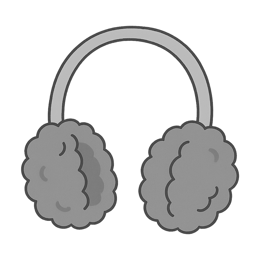 「耳当て(イヤーマフ)」 白黒(モノクロ)版|無料ダウンロード